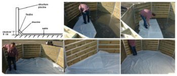 Piscine hors‑sol en bois naturel de forme octogonale avec diamètre extérieur d’environ 5,00 m et hauteur 1,27 m, livrée en kit complet comprenant liner PVC anti‑UV, système de filtration à sable avec pompe, pièces à sceller, échelle intérieure inox et échelle extérieure bois, protections de parois et feutres protecteurs. Installation possible hors‑sol, semi‑enterrée ou enterrée selon vos besoins.
