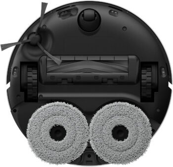 Robot aspirateur‑laveur 2‑en‑1 avec puissance d’aspiration jusqu’à 11 000 Pa, navigation intelligente avec détection d’obstacles, double serpillères rotatives, grande autonomie et station de base pour entretien simplifié.