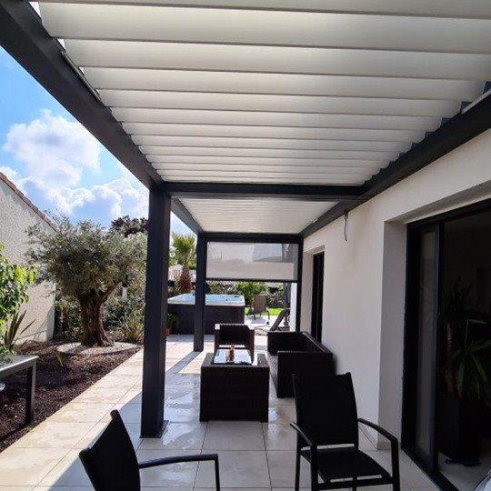 Grâce à son design contemporain et sa grande adaptabilité, cette pergola devient un vrai prolongement de votre habitation, transformant votre terrasse en un lieu agréable à vivre toute l’année, que ce soit pour des moments de détente, des repas en plein air ou des soirées entre amis.