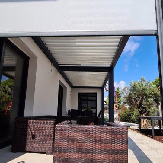 Pergola bioclimatique à lames en kit – alu thermolaqué