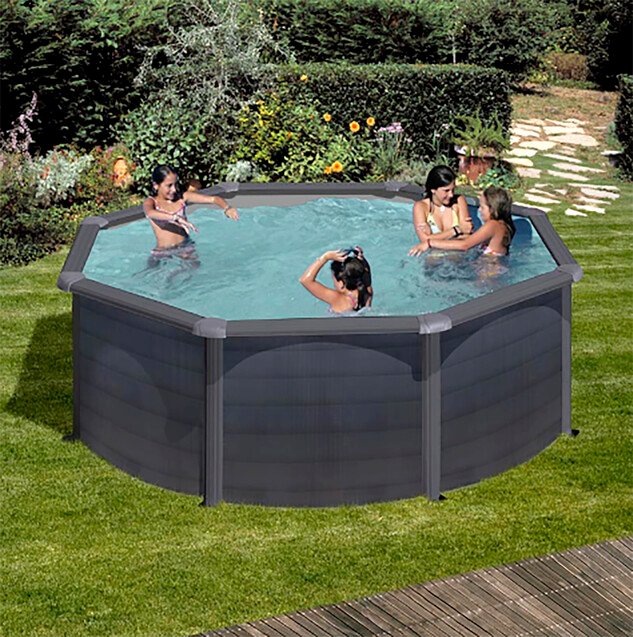 Piscine hors‑sol ronde en acier gris anthracite Ø 3,20 × H 1,22 m
